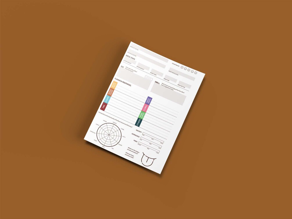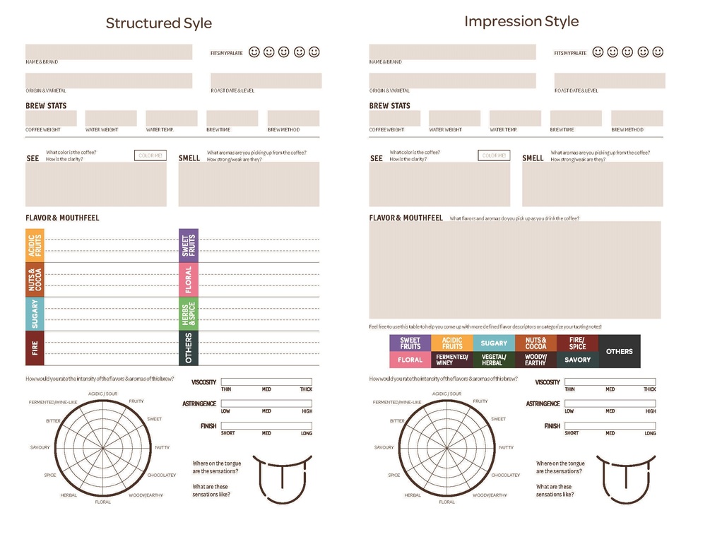The highlight of the structured style tasting sheet is the flavor notes table. It acts as a prompt to focus on the tasting experience in terms of breaking down a coffee's flavors into different taste components and identifying them.